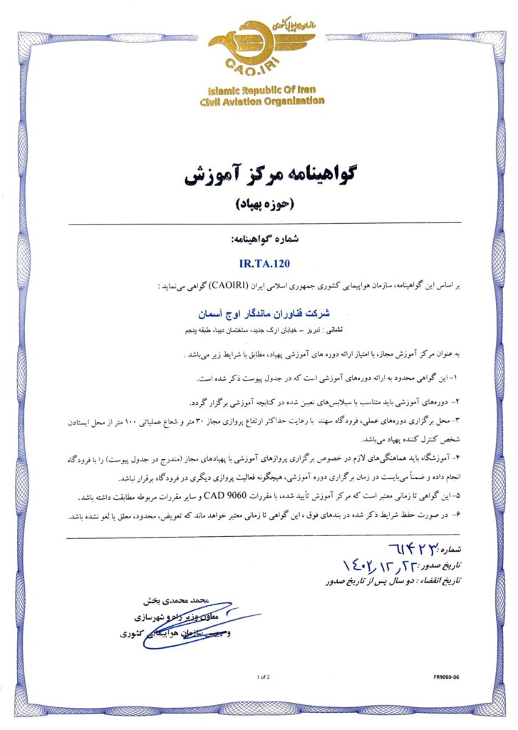 مجوز آموزشی شرکت فناوران ماندگار اوج آسمان